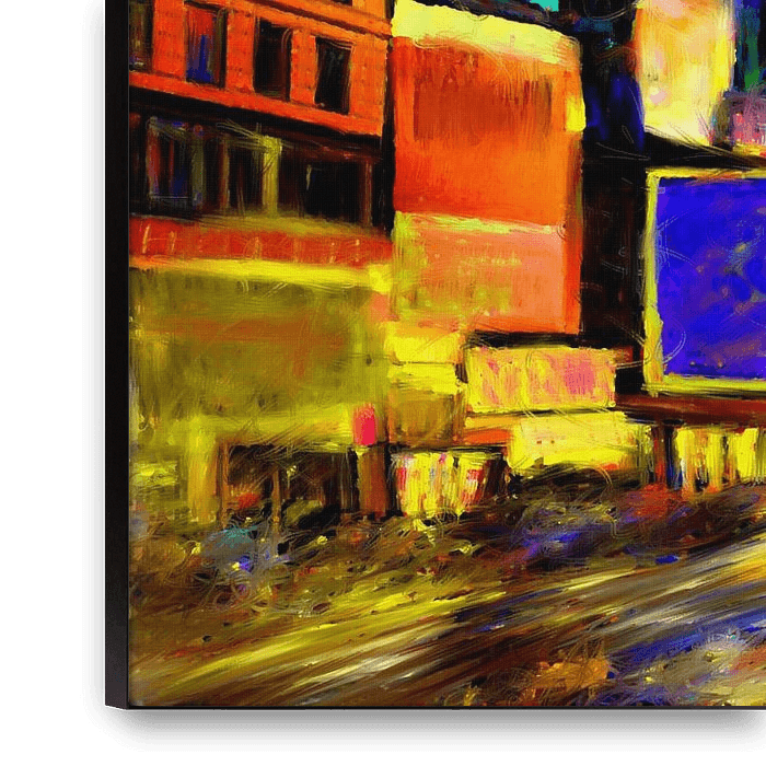 Tauche ein in die pulsierende Energie von New York! Dieses ausdrucksstarke Gemälde des Times Square erstrahlt in leuchtenden Blau-, Gelb- und Rottönen und fängt die Dynamik der Weltmetropole auf beeindruckende Weise ein. Die leuchtenden Lichter und die ikonischen Hochhäuser erzeugen eine lebendige, fast surreale…