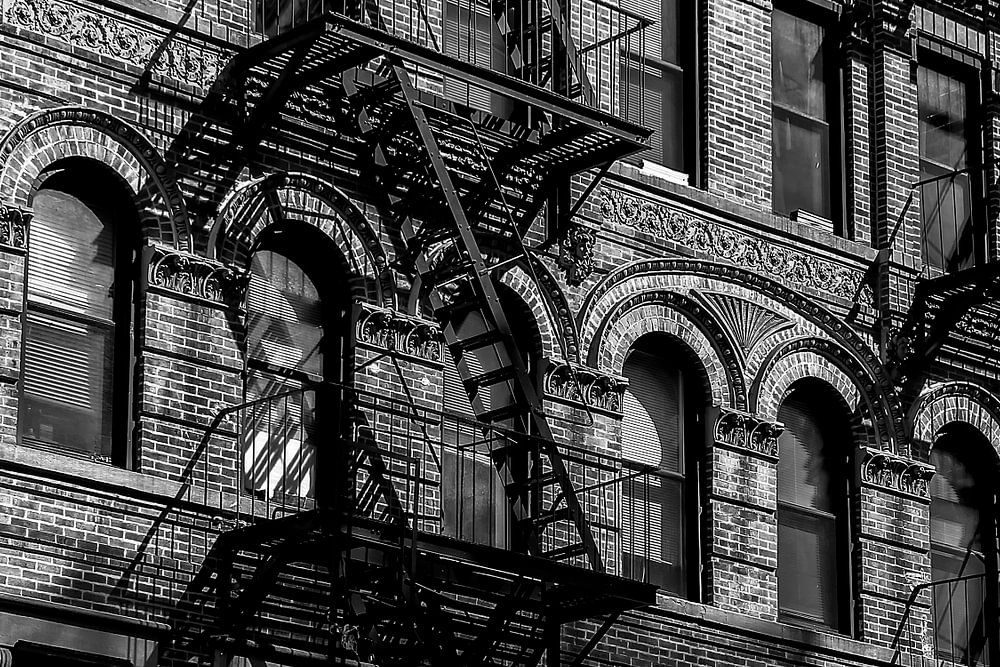 Typische New Yorker Feuerleitern in Chinatown, Manhattan.