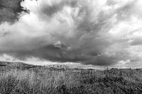 Der niederländische Himmel kann wunderschön sein. Dieses Foto habe ich in der Nähe von Petten aufgenommen und in Schwarz-Weiß umgewandelt. Die bedrohlichen Wolken kommen auf dich zu; wie schön sie sind!