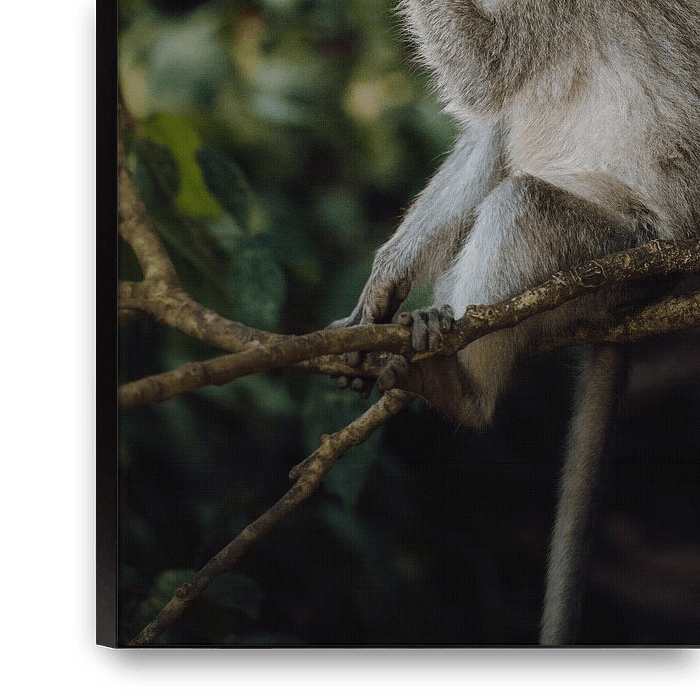 Dieses stimmungsvolle Foto zeigt ein neugieriges Affenbaby, das auf einem Ast sitzt, versteckt im Grün des tropischen Regenwaldes von Bali. Mit einer Hand am Mund und einem verträumten Blick in die Ferne scheint das kleine Äffchen für einen Moment völlig in Gedanken versunken zu sein. Das weiche Licht und die natürlichen Farben schaffen…