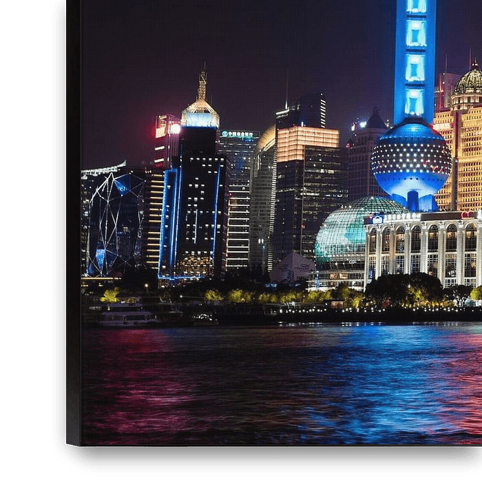 Wenn die Nacht über Shanghai hereinbricht, verwandelt sich die Hektik der Stadt in einen Moment der Ruhe. Die beleuchteten Gebäude baden in tiefen Blautönen und warmen Goldakzenten, die zusammen mit ihren Reflexionen im Wasser ein ruhiges und harmonisches Bild ergeben. Dieses Werk zeigt, dass selbst in einer Weltstadt die Nacht Raum für…