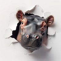 Bestelle dieses Popart-Wandbild Nilpferd aus der Wand von TheXclusive Art als Kunstdruck auf Leinwand, Alu-Dibond, als Poster, Fototapete oder Acrylglasbild.