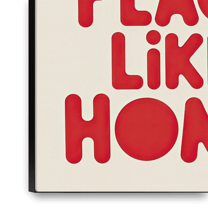 Bestelle diese Malerei No Place Like Home: Rote Typografie auf Beige von Niklas Maximilian als Reproduktion auf Leinwand, Alu-Dibond, als Poster, Fototapete oder Acrylglasbild.