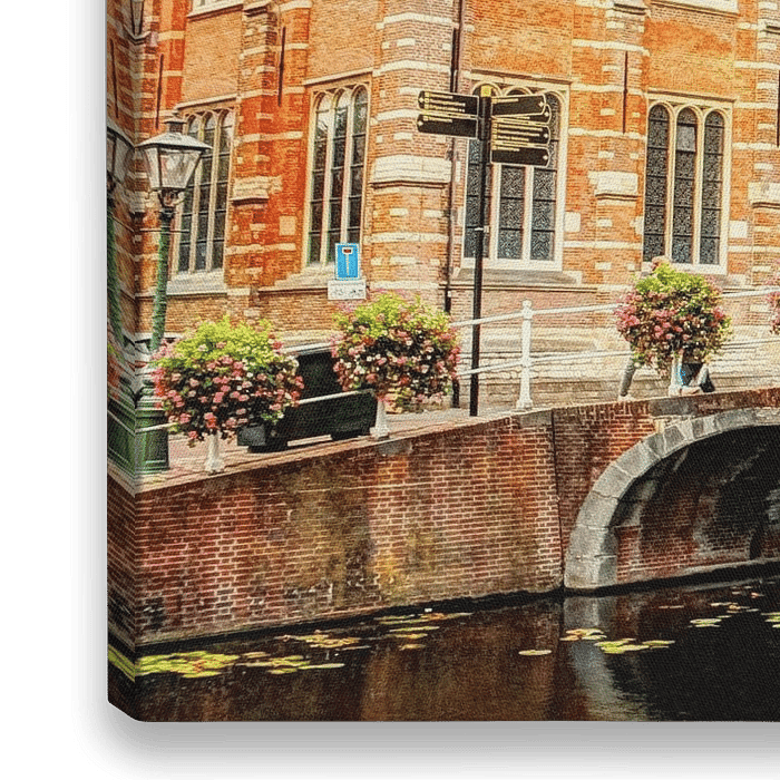 Bestelle das Foto Nonnenbrug mit Akademiegebäude Leiden Niederlande von Hendrik-Jan Kornelis als Reproduktion auf Leinwand, Alu-Dibond, als Poster, Fototapete oder Acrylglasbild.