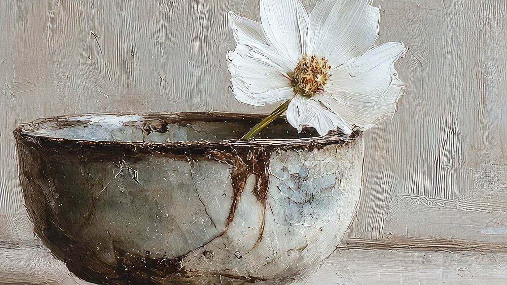 Eine sanfte, minimalistische Blumenkomposition, die japanische Ästhetik mit ruhigen Naturtönen, einfachen Formen und einem ausgewogenen negativen Raum verbindet und so eine ruhige, moderne und zeitlose botanische Harmonie schafft.