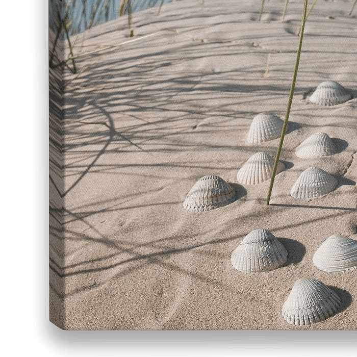 Muscheln auf Sanddüne mit feinem Dünengras.