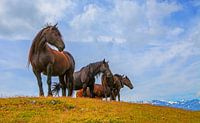 Bestelle das Foto Norikerpferde am Berg von Christa Kramer als Reproduktion auf Leinwand, Alu-Dibond, als Poster, Fototapete oder Acrylglasbild.