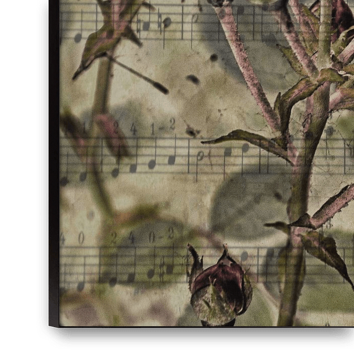 Bestelle dieses Stilleben Notenblatt - Rosenmelodie von Christine Nöhmeier als Reproduktion auf Leinwand, Alu-Dibond, als Poster, Fototapete oder Acrylglasbild.