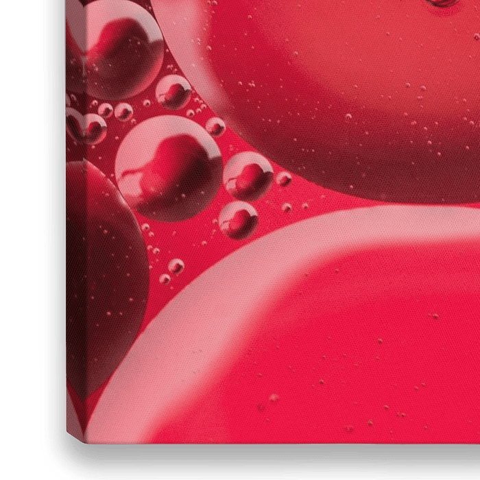 Nahaufnahme von Olivenöl auf Wasser mit rotem Hintergrund. Im Großformat sieht es am besten aus. Erhältlich in vielen verschiedenen Farben und Formen. Sehen Sie sich die anderen Bilder von mir auf dieser Seite an.
