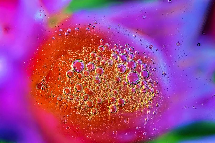 Bestelle dieses abstrakte Wandbild Öltropfen in Wasser von Monika Scheurer als Kunstdruck auf Leinwand, Alu-Dibond, als Poster, Fototapete oder Acrylglasbild.