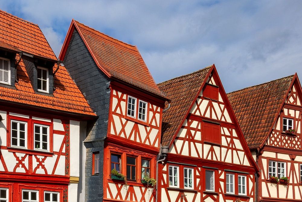 Die Stadt Ochsenfurt liegt an den Ufern des Mains in Bayern, in der Region Franken. Die Stadt hat sehr schöne Fachwerkhäuser wie das hier abgebildete.