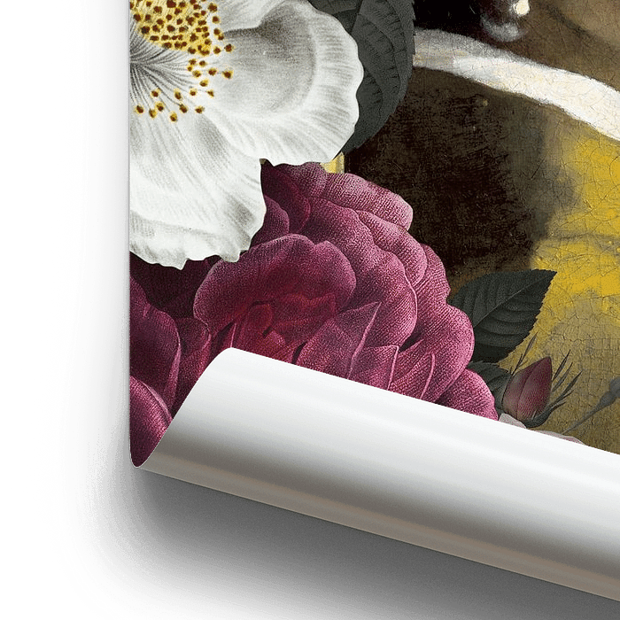 Collage mit schönen bemalten Rosen und dem von Johannes Vermeer 1665-1667 gemalten "Mädchen mit Perlenohrring".
