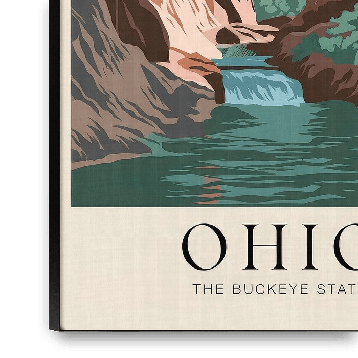 Bestelle dieses Landschafts-Wandbild Ohio Vintage Travel Poster von Poster Art Shop als Reproduktion auf Leinwand, Alu-Dibond, als Poster, Fototapete oder Acrylglasbild.