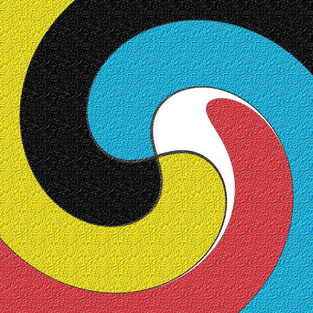 Abstraktes digitales Ölgemälde rot blau gelb schwarz retro