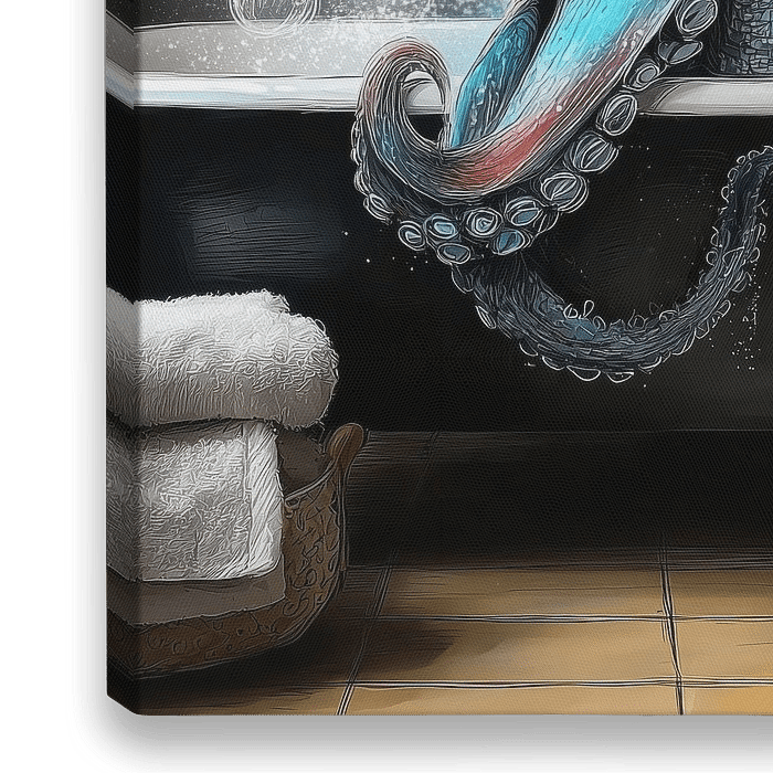 Bestelle das digitale Kunst Bild Oktopus in der Badewanne von JBJart Justyna Jaszke als Reproduktion auf Leinwand, Alu-Dibond, als Poster, Fototapete oder Acrylglasbild.