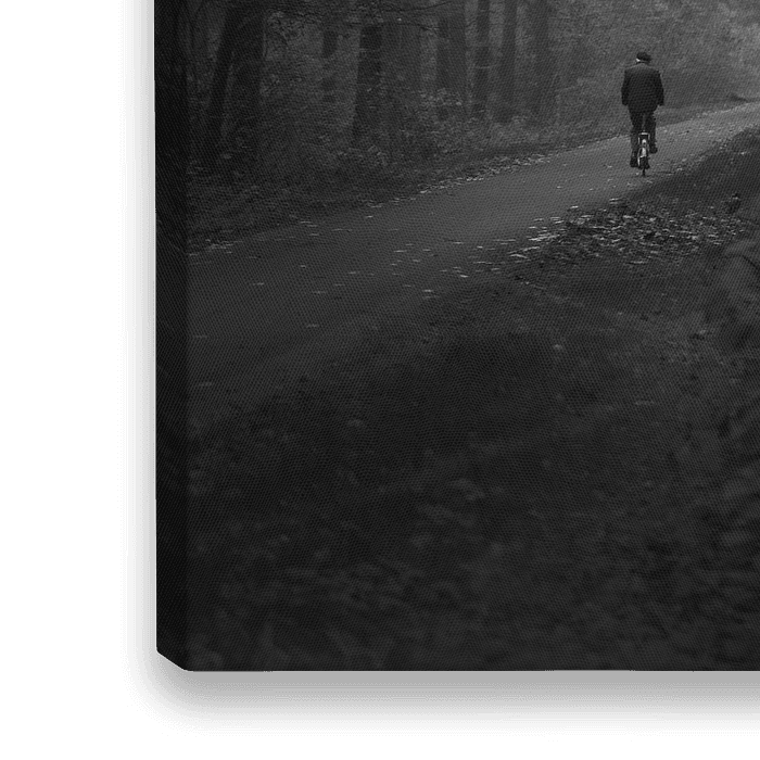 Bestelle dieses abstrakte Wandbild Old man cycles in the forest von Luis Boullosa als Reproduktion auf Leinwand, Alu-Dibond, als Poster, Fototapete oder Acrylglasbild.