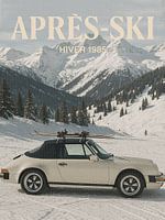 Feiern Sie die Magie des Winters mit diesem Retro-Après-Ski-Kunstdruck. Es zeigt einen Oldtimer in den verschneiten Alpen und fängt das filmische Postkartengefühl der Skisaison der 1980er Jahre ein - voller Nostalgie, Luxus und alpinem Charme. Es eignet sich perfekt als Wandkunst für Chalets, Hütten oder eklektische Häuser und ist auch…
