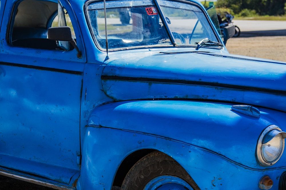 Oldtimer-Auto in Kuba in der Innenstadt von Havanna. Viele dieser Autos stammen aus der Zeit, als Fidel Castro noch nicht an der Macht war. Castro wurde am 16. Februar 1959 Premierminister von Kuba und am 3. Dezember 1976 Präsident. Es ist, als ob man in eine Zeitmaschine einsteigt,