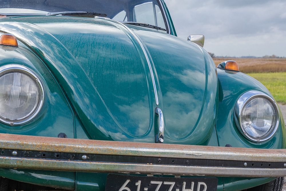 Klassischer Oldtimer oder Youngtimer grüner Volkswagen Käfer