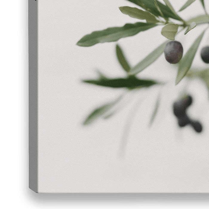 Bild von den Zweigen eines Olivenbaums mit schwarzen Oliven. Der Olivenbaum symbolisiert Freundschaft und Solidarität, Liebe und Treue, Stärke, Frieden, Sieg und Hoffnung. Ich liebe die Einfachheit und den minimalistischen Charakter dieses Bildes.