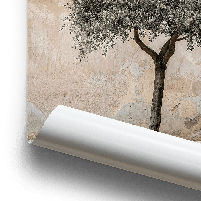 Bestelle dieses Landschafts-Wandbild Olivenbaum vor historischer Architektur von Poster Art Shop als Kunstdruck auf Leinwand, Alu-Dibond, als Poster, Fototapete oder Acrylglasbild.