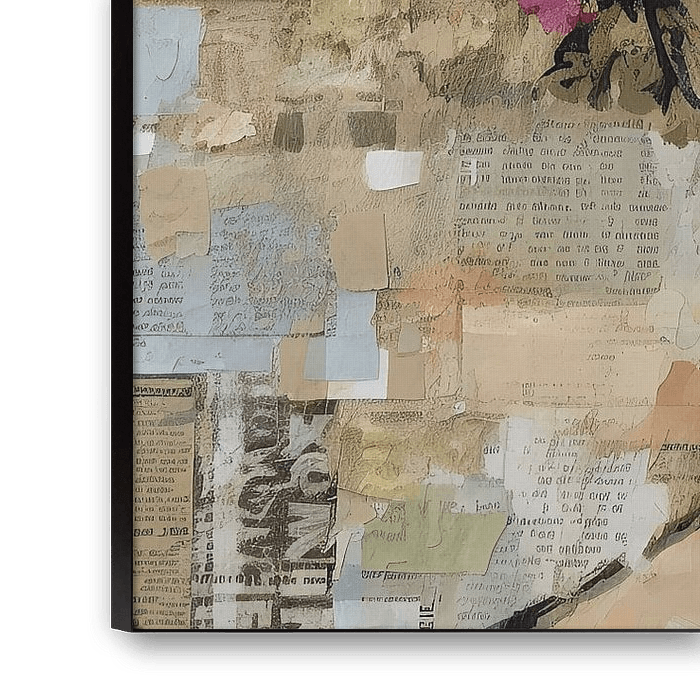 Olivia Portrait - abstrakte Malerei / Mischtechnik gemalt. Schöner Kontrast zwischen anspruchsvollem Portrait und roher Collage/Maltechnik.