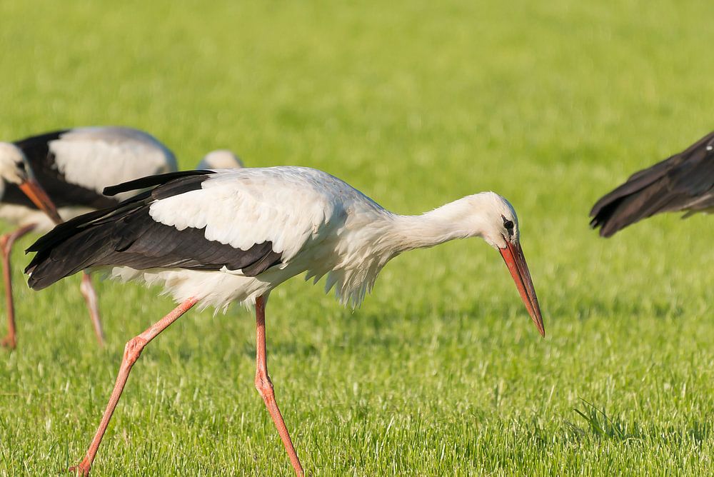 Ooievaars Ciconia ciconia in een pas gemaaid weiland in het oosten van Nederland in het najaar van 2016
