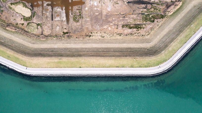 Bestelle dieses Landschafts-Wandbild Oosterscheldedijk 1 von Top down - Maarten Kempen als Reproduktion auf Leinwand, Alu-Dibond, als Poster, Fototapete oder Acrylglasbild.