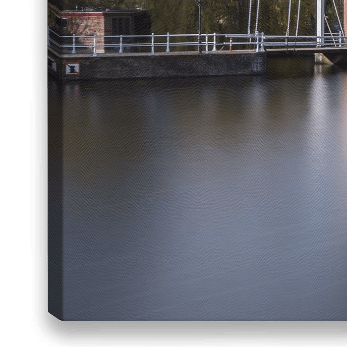 Der Oostpoort in Delft, aufgenommen mit einer langen Verschlusszeit an einem sonnigen Herbsttag.