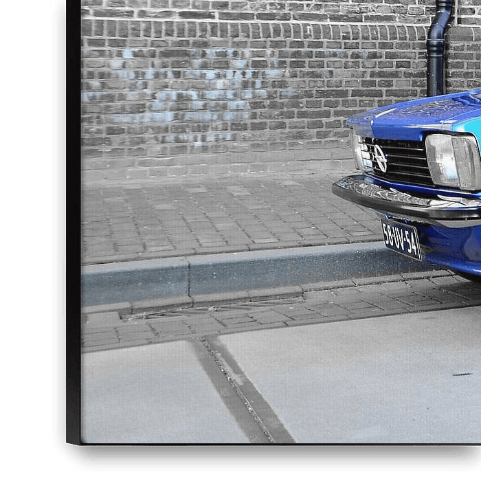 Opel Kadett SR in Schwarz Weiß mit blauem Akzent, auch in Schwarz und Weiß möglich. Opel-Version der General Motors "T-Car. Oldtimer von 1977.