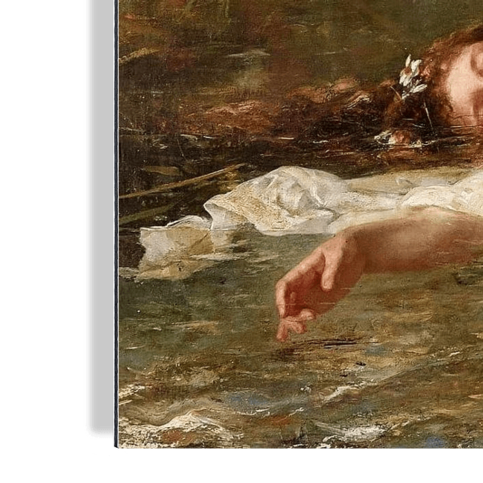 Friedrich Wilhelm Theodor Heysers Ophelia ist eine bewegende Darstellung von Shakespeares tragischer Heldin aus Hamlet. Das Gemälde zeigt sie friedlich schwebend in einem blumenübersäten Bach, an der Schwelle zum Tod. Heyser fängt den romantischen Kontrast zwischen Schönheit und Vergänglichkeit ein: Ophelias heitere Ruhe im Gegensatz zur dunklen Natur, die sie umgibt. Die Blumen symbolisieren ihr kurzes Leben, während das stille Wasser ihren Kummer widerspiegelt, was sie zu einem zeitlosen Symbol für Unschuld und verlorene Liebe macht.