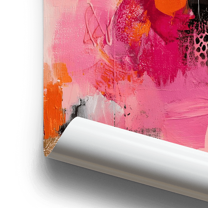 In diesem Kunstwerk wird ein abstrakter botanischer Ausdruck in einer Mischung aus Rosa- und Orangetönen zum Leben erweckt, die sich wunderbar miteinander vermischen und eine verspielte Atmosphäre hervorrufen.