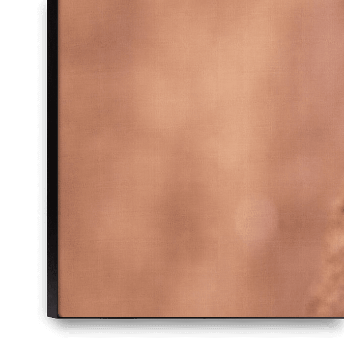 Ihre gewählte Kunst auf Leinwand, gespannt in einem Aluminiumrahmen. Schnell und einfach austauschbar für eine frische Ausstrahlung und ganz nach Ihren Wünschen.