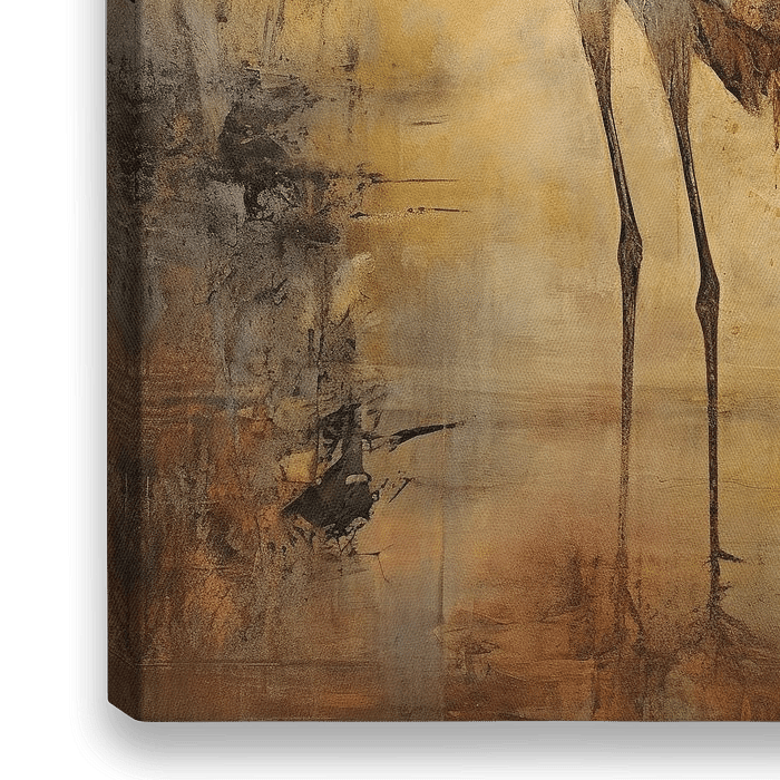 Orange - Mit seiner subtilen Pinselführung und den sanften Erdtönen bringt dieses Gemälde eines stattlichen Kranichs eine ruhige Atmosphäre in jeden Raum. Mit Textur und einem Hauch von Orange hat der Künstler ein lebendiges, fast impressionistisches Bild geschaffen, das sowohl modern als auch zeitlos wirkt.