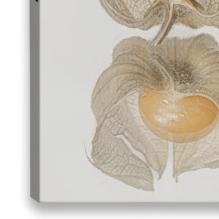 Über „Orangefarbene Goldbeere, geschützt in ihrer geäderten Hülle“ von Marjolijn van den Berg