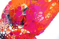 Dies ist ein großartiges Beispiel für „Acrylic Pouring“ oder „Fluid Art“. Es handelt sich um eine energiegeladene Komposition, die durch ihre satten, fast neonartigen Farben und die komplexen, organischen Strukturen sofort ins Auge fällt.
