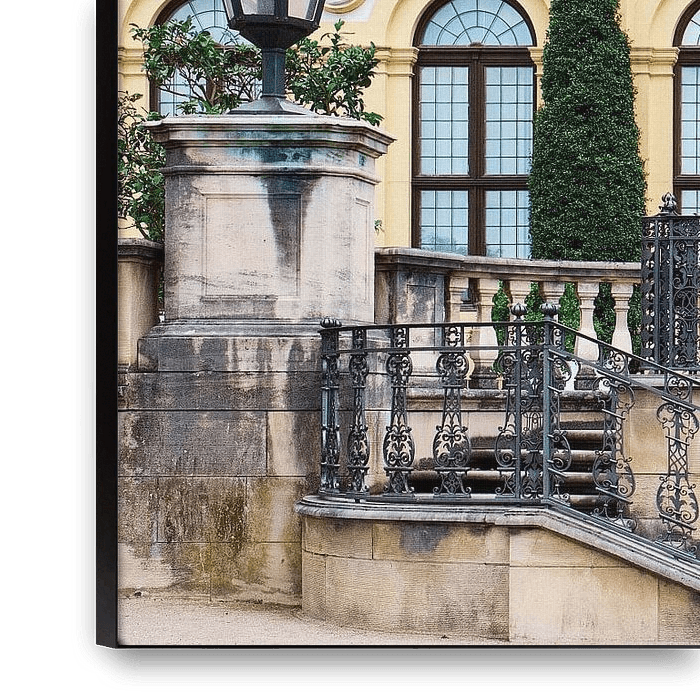 Treppenaufgang an der Orangerie in Kassel. Ein Ort um Innezuhalten und neue Kraft zu schöpfen. Hängen Sie sich diesen Ort der Inspiration in die eigenen vier Wände!
