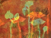 Ein fröhliches Blumenfeld, das durch mehrmaliges Rollen über die Gelliplate entstanden ist