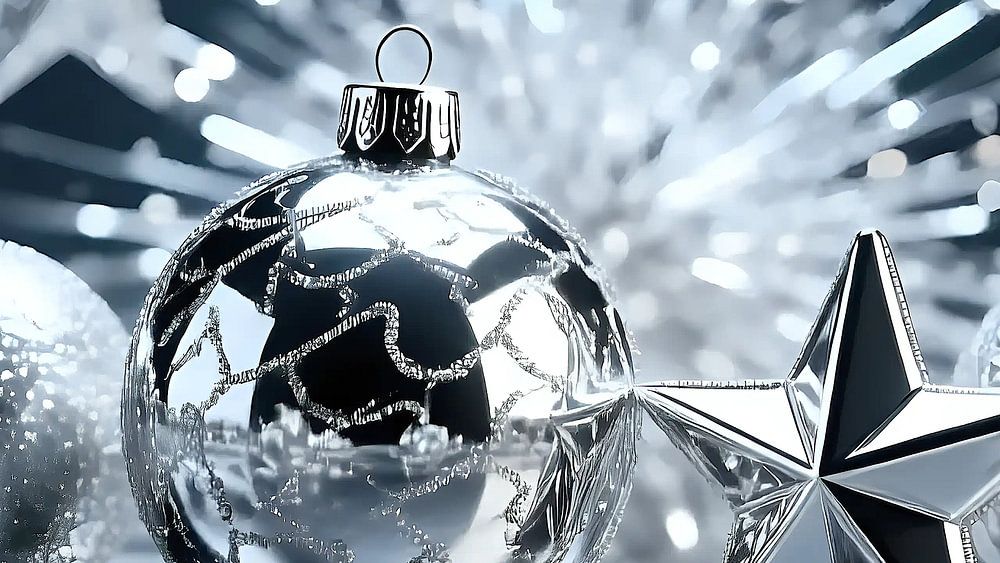 Das Bild fängt den dramatischen Moment einer Christbaumkugel-Explosion ein, in dem das Chaos der zerbrechenden Glasornamente eine faszinierende Ästhetik entfaltet. In einem Spektrum lebendiger Farben, darunter leuchtendes Rot, funkelndes Gold, tiefes Grün und strahlendes Blau, schießen die zerplatzen Kugeln in unterschiedliche Richtungen. Ihre glatten, reflektierenden Oberflächen fangen das sanfte Licht der Weihnachtsbeleuchtung ein und erzeugen ein schimmerndes Spiel von Licht und Schatten, das die Szene zum Leben erweckt.