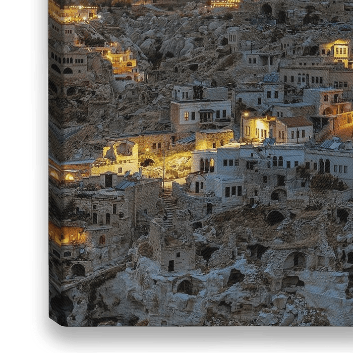 Das Dorf Ortahisar in Kappadokien zur blauen Stunde
