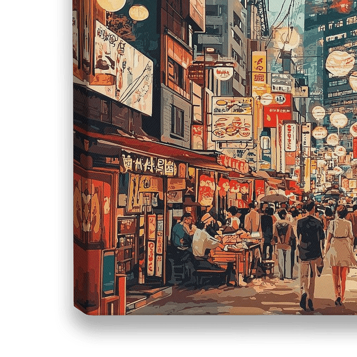 Dieses Kunstwerk ist eine Darstellung der japanischen Stadt Osaka mit ihrem geschäftigen Treiben. Zu sehen ist der Tsutenkaku-Turm, ein Wahrzeichen von Osaka.