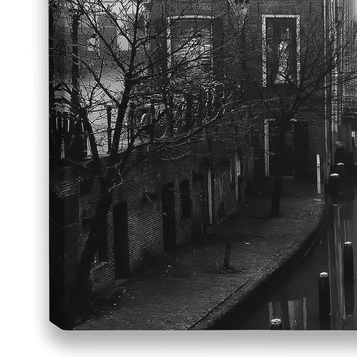 "Oudegracht in Utrecht und die Gaardbrug von der Maartensbrug in Schwarz-Weiß" ist Teil einer Fotoserie in Schwarz-Weiß von André Blom Fotografie aus Utrecht. Es unterstreicht den monumentalen Charakter der Domstadt.