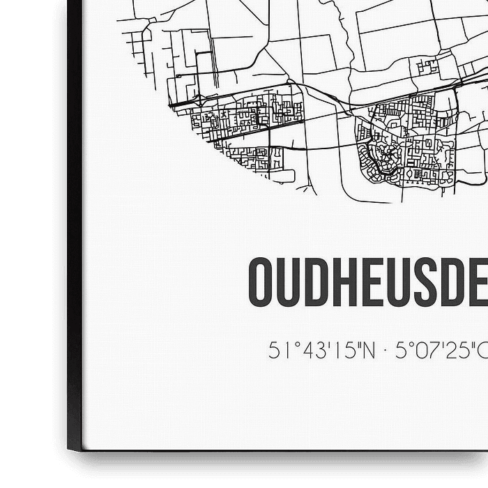 Bestelle dieses abstrakte Wandbild Oudheusden (Nordbrabant) | Karte | Schwarz und Weiß von Ortsdrucke als Reproduktion auf Leinwand, Alu-Dibond, als Poster, Fototapete oder Acrylglasbild.