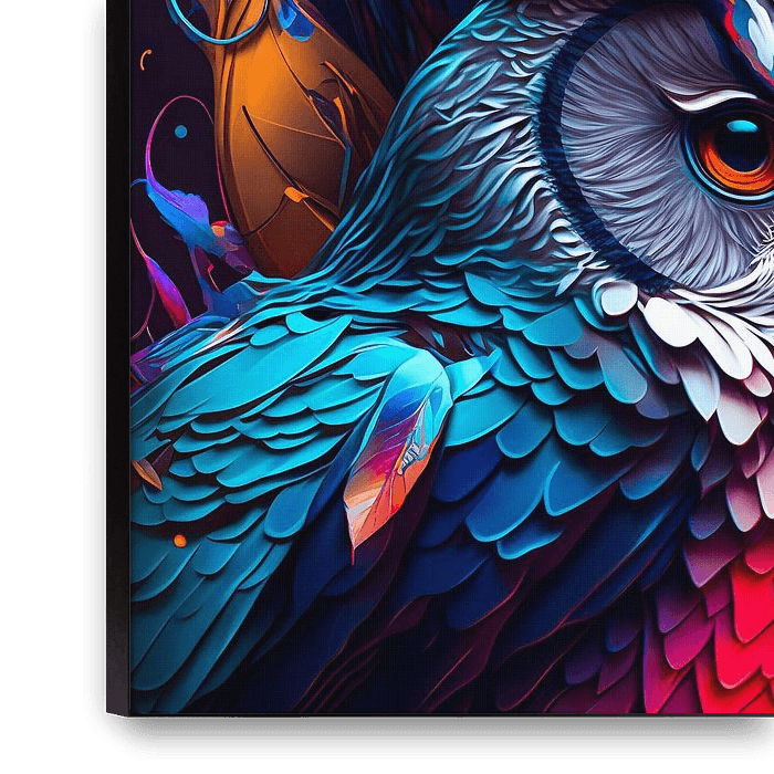 Zwei Eulen in beonders kräftiger Farbgestaltung sind ein besonderer Blickfang für jede Wand.