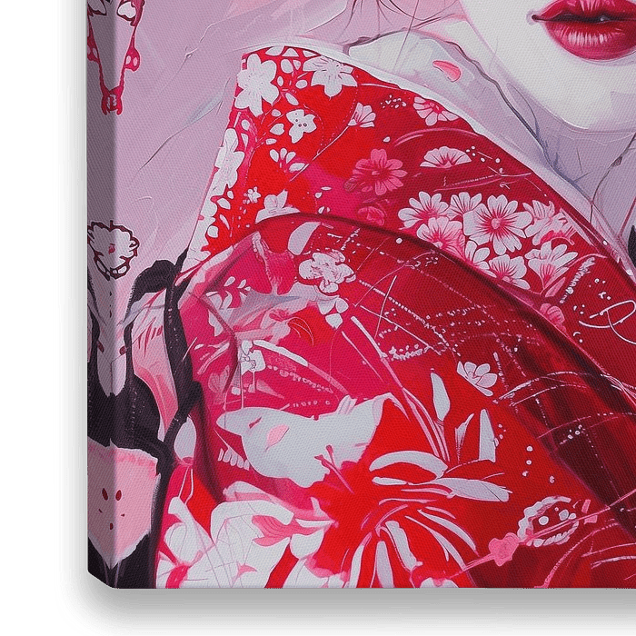 Diese Geisha sieht sowohl verspielt als auch königlich aus, der Frühling beginnt und sie ist aufgeregt, was er bringen wird, aber sie verliert nicht ihre Gelassenheit.