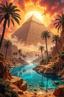 Bestelle das digitale Kunst Bild PYRAMETHRA - Eine monumentale Pyramide über einer Oase in der Wüste von INFERAURUM als Kunstdruck auf Leinwand, Alu-Dibond, als Poster, Fototapete oder Acrylglasbild.