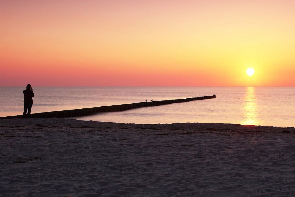 Pärchen am Strand der Ostsee im Sonnenuntergang