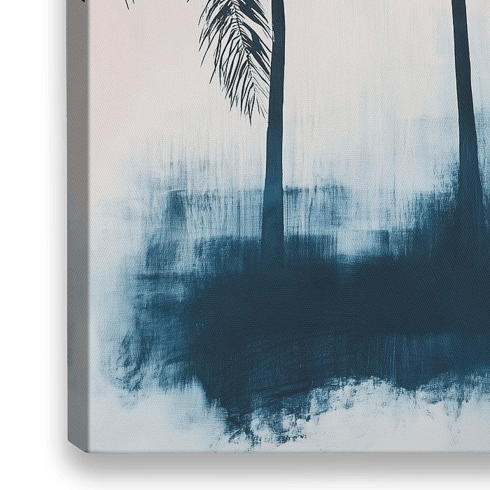 Das Bild "Palmen auf Leinen" ist ein anspruchsvolles und verträumtes Kunstwerk, das ein Gefühl von Ruhe und exotischer Atmosphäre hervorruft. Die schwarzen Silhouetten der Palmen stehen in der Komposition im Vordergrund, ihre Formen sind scharf und kraftvoll vor einem Hintergrund mit subtilen Farbverläufen umrissen. Mit ihren schlanken…