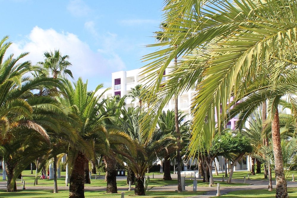 Palmen in einer Hotelanlage auf Gran Canaria Spanien.
