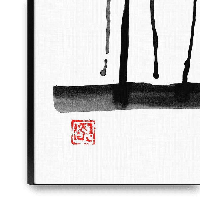 SUMI-E ist eine japanische Technik, die im 6. Jahrhundert von den Chinesen entlehnt wurde. Es handelt sich um eine Lavierung, die dank verdünnter Tusche, die auf Papier aufgetragen wird, entsteht.